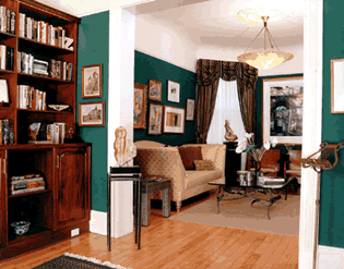 the original ceiling medallion. An awkward window is adapted